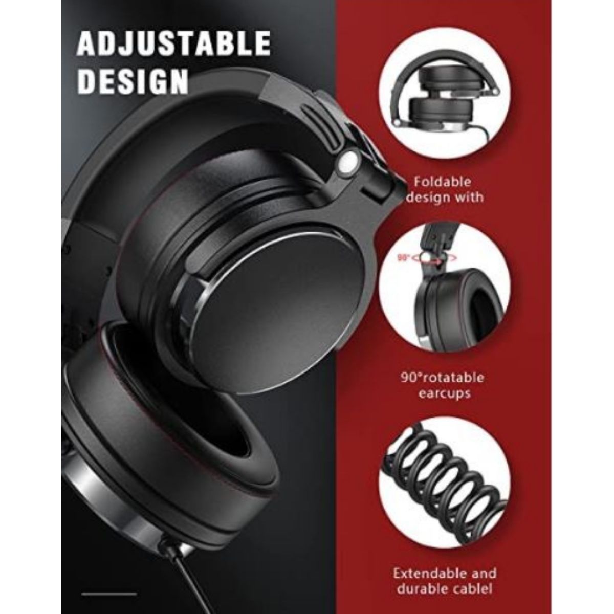 Furthermore, this studio DJ headset sports a 2-in-1 plug with one standard-sized 3.5mm socket inside and one 6.35mm plug outside. To change the plug, just turn the main plug on or off. The strong spring cable that this headset contains stretches to three meters, easily allowing it to reach across a stage.