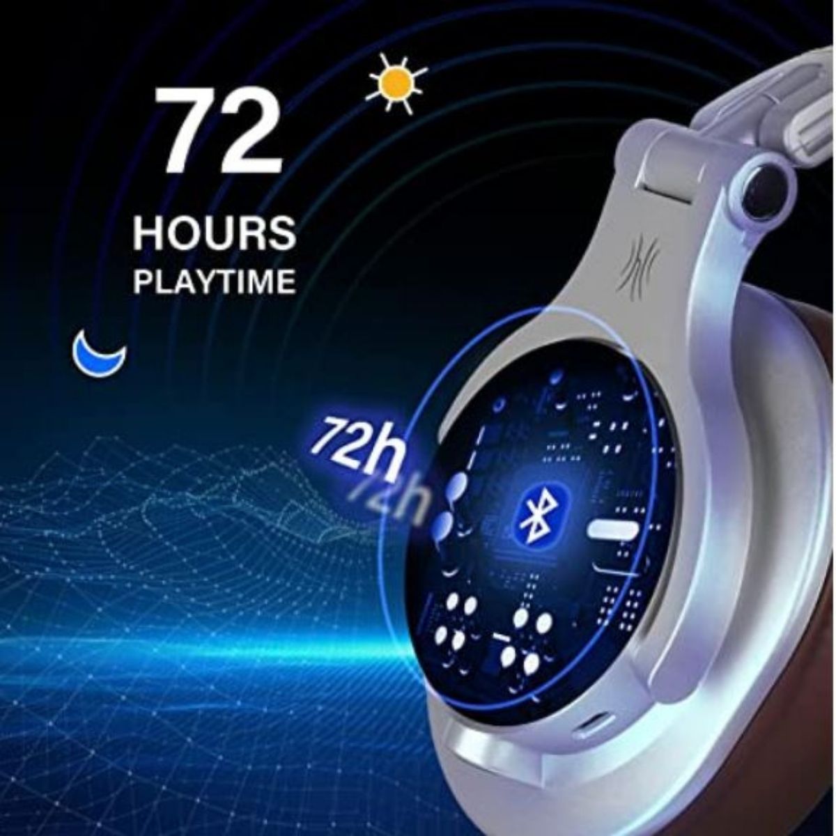 The battery has a capacity of approximately 50 hours, which is the long battery life for a Bluetooth device.